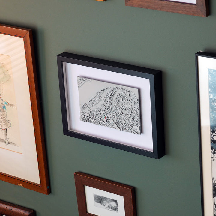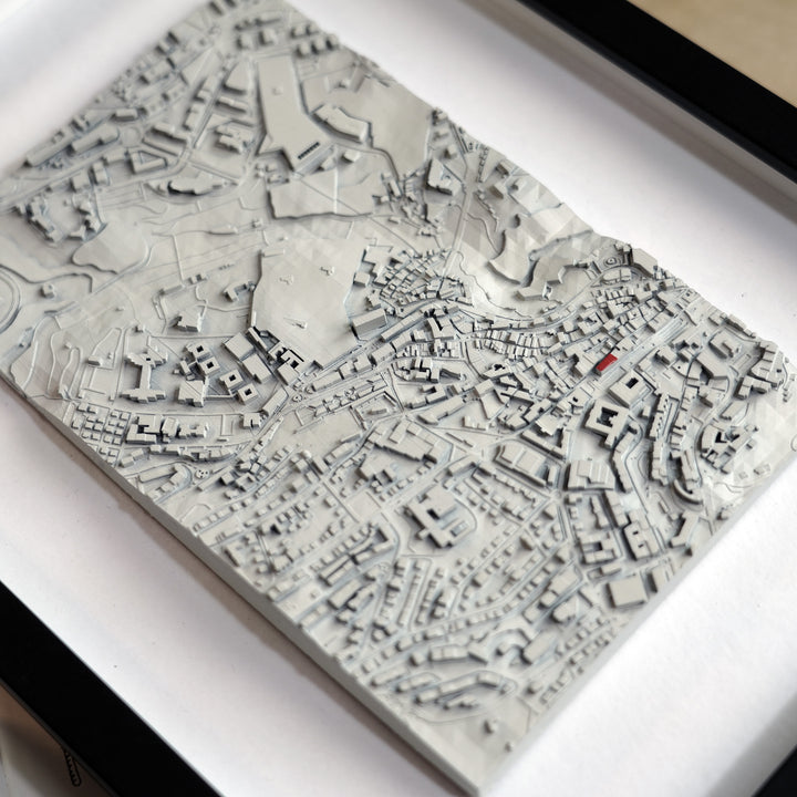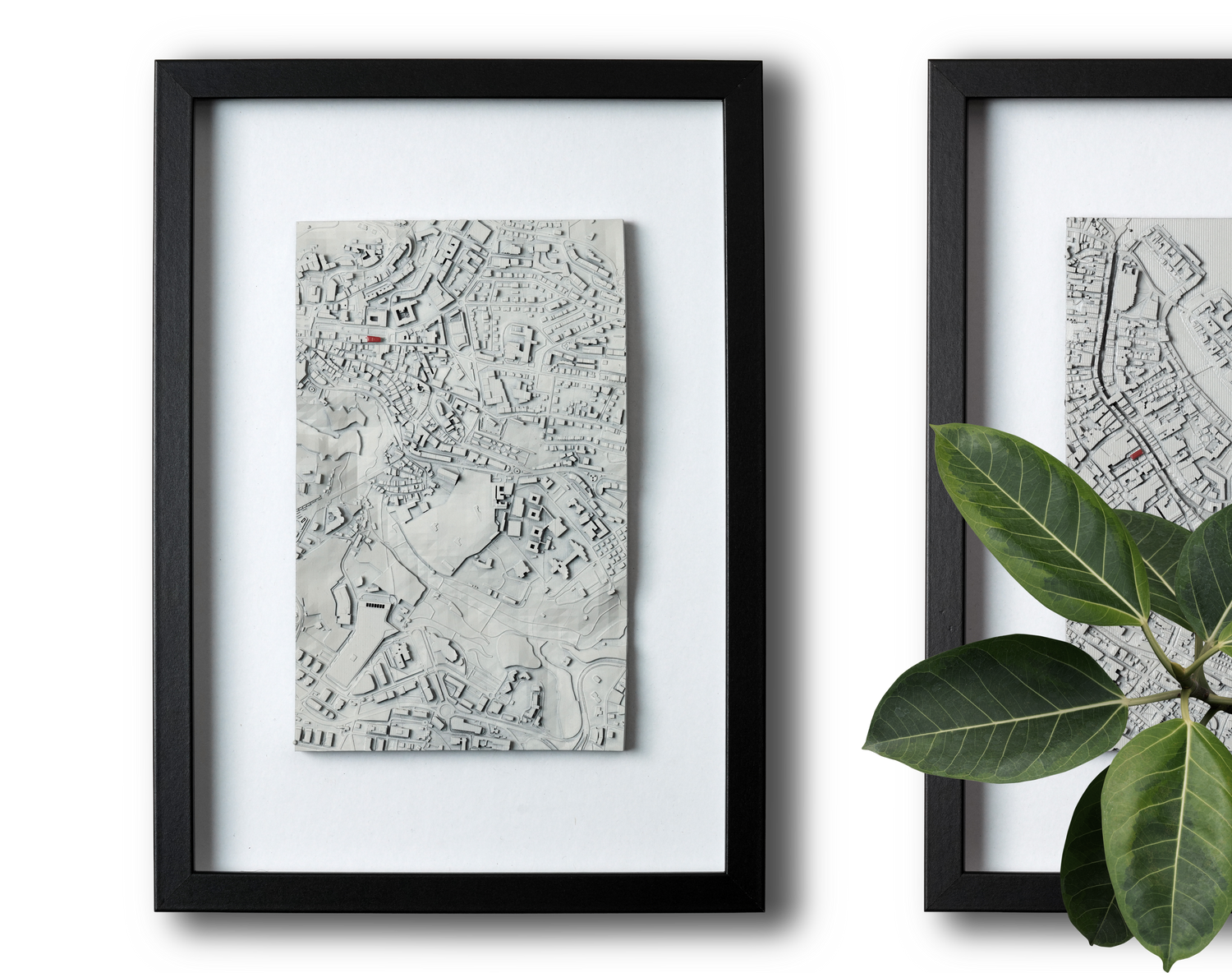 It's easy to choose your desired location, anywhere in the world, and I'll make you a 31x22x4 cms framed 3d relief map.